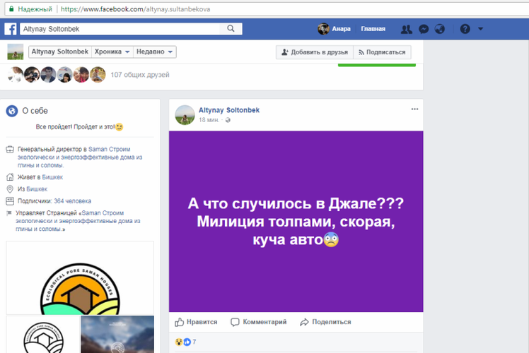 «А что случилось в микрорайоне «Джал»? Милиция толпами, скорая, куча авто...», — написала она.