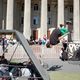 Замечаю причудливую конструкцию. С правой стороны ее используют паркурщики, с левой — велосипедисты. Выполняют трюки на потеху публике. На газоне уличные художники расставили холсты и рисуют граффити. И все это в десятке метров от Дома правительства.
