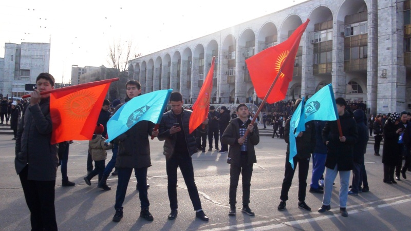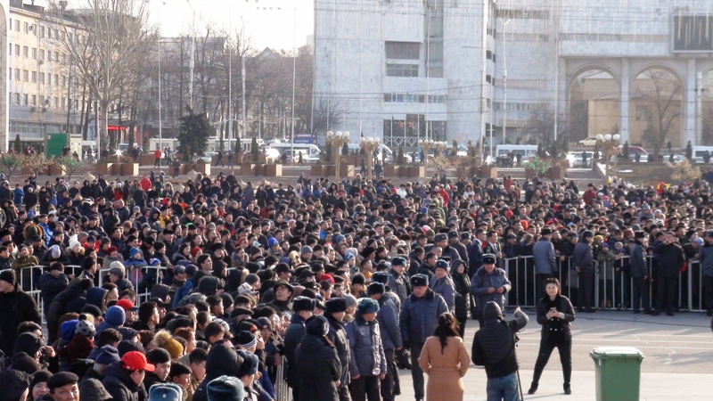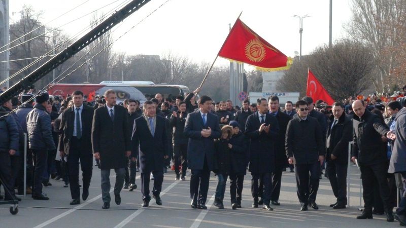 На столичной площади Ала-Тоо сегодня прошло торжество в честь сборной по футболу, вернувшейся с Кубка Азии. Оно включало в себя выступления артистов и поздравления команды. Приветствовать ее собралось несколько тысяч человек.