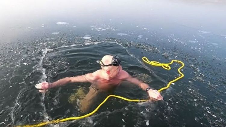 Петр Капоун преодолел более 10 метров между двумя специально сделанными прорубями. При этом фридайвер погружался в ледяную воду без специального костюма, в одних плавках.