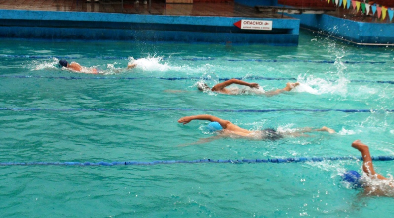 На первом этапе участники проплыли 200 метров вольным стилем.