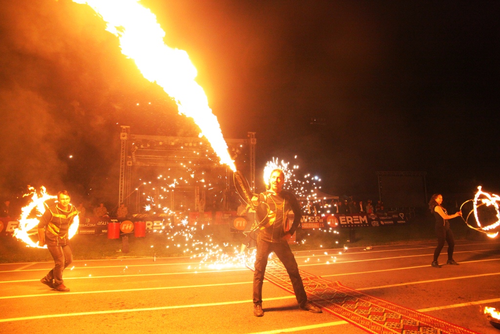 В рамках церемонии открытия состоялись шоу водяных барабанов и саламандра-шоу.