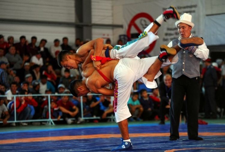 В Таласе на Национальных играх кочевников 20 сентября прошел турнир по кыргыз курошу. Об этом сообщило Госагентство по делам молодежи, физической культуры и спорта КР.