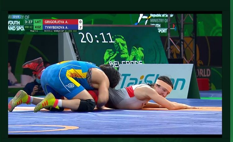Айсулуу Тыныбекова выиграла золото в весовой категории до 62 килограммов Кубка мира по женской борьбе. Бой закончился несколько минут назад.