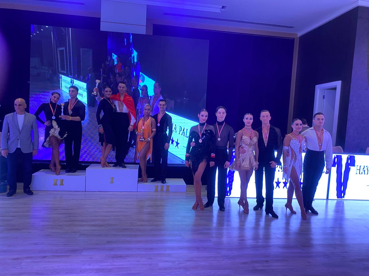 В категории «молодежь, латина» наша танцевальная пара — Дмитрий Блинков и Асаль Мамбетова — заняли первое место. В категории «Rising Stars взрослые+молодежь, латина» они также завоевали золотую медаль.