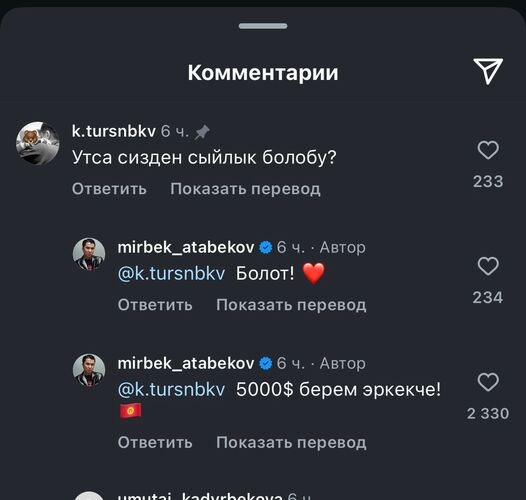 Певец Мирбек Атабеков пообещал подарить боксеру Мунарбеку Сейитбек уулу $5 тысяч, если он победит на Олимпийских играх в Париже. Об этом он сообщил на своей странице в Instagram.