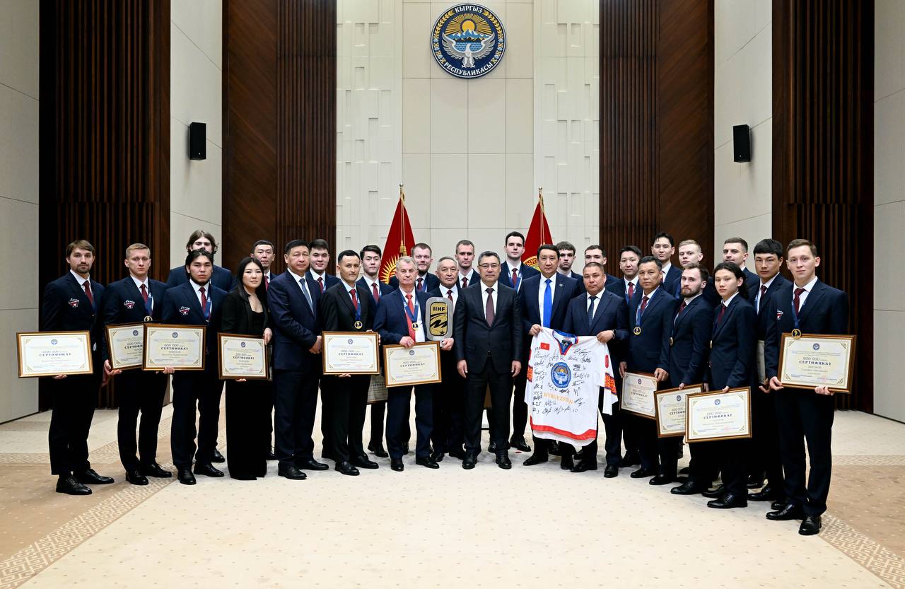 В Бишкеке прошла церемония чествования национальной сборной Кыргызстана по хоккею. Об этом сообщили в пресс-службе президента.