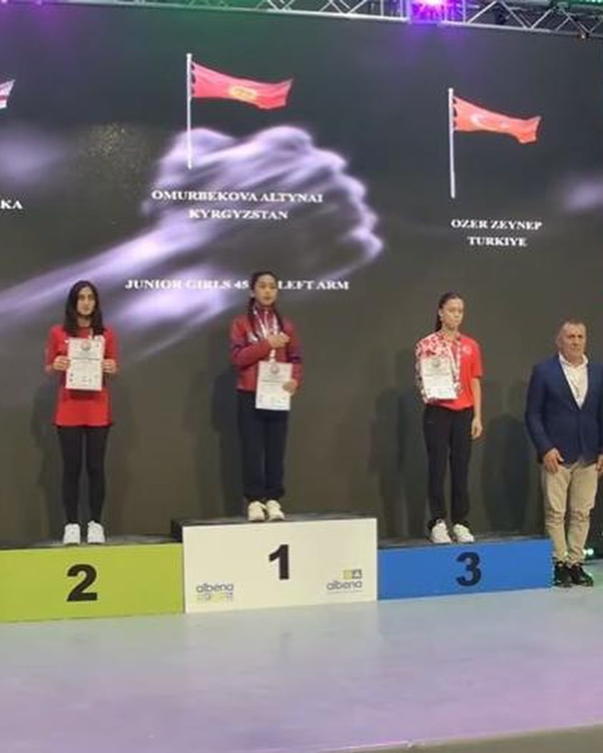 В поединках левой рукой первое место у Алтынай Омүрбековой, а третье завоевали Залкар Нурланов, Тансулуу Маматова и Байтур Абжалбеков.