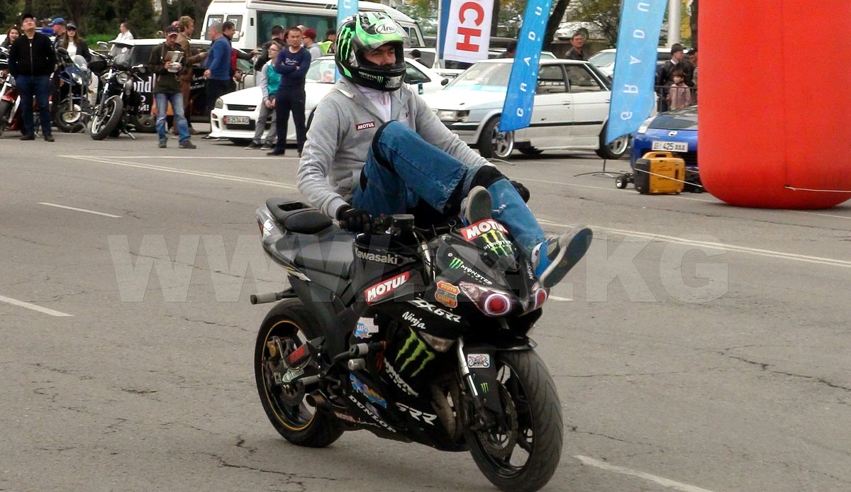 «Нас трое, мы из Алматы, — рассказал член группы «КазахStunt» Вячеслав Хлопцев. — Подготовили для выступления такие элементы, как «стоппи», «вилли», «бернаут», «серкл» и кучу других с непонятными названиями! А вообще у нас турне. Уже побывали на открытии мотосезона в Узбекистане, Шымкенте. После вас поедем в Алматы и Астану. У вас мы в четвертый раз. Организация праздника на высшем уровне. Ребята очень дружные, как надо встречают гостей. Все хотят ехать сюда. Здесь круто и тепло!»
