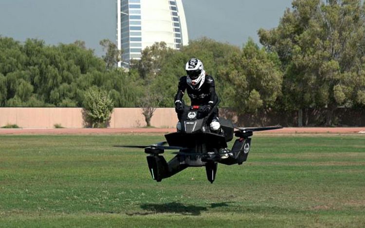 Контракт на поставку летающих мотоциклов полиция Дубая заключила в 2017 году. Их выпускает компания Hoversurf, принадлежащая российскому бизнесмену Александру Атаманову.