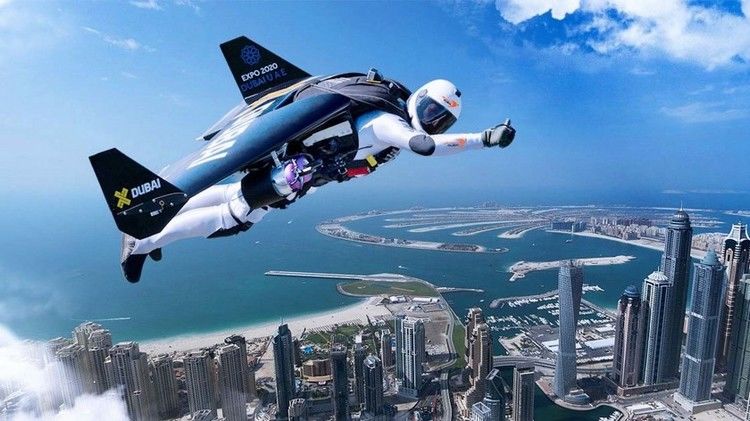 Последняя модель ранца позволяет разогнаться почти до 300 километров в час и пробыть в воздухе 10 минут. Ив Росси перелетел на джетпаке через пролив Ла-Манш и Большой Каньон, облетел Фудзияму и спрыгнул с небоскреба «Бурдж-Халифа» — самого высокого здания в мире.