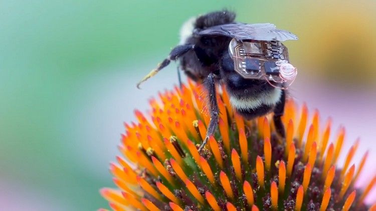 Рюкзаки на пчелах собирают данные о влажности, свете и температуре. Памяти и батарейки в сенсорах хватает примерно на семь часов сбора данных, когда пчела возвращается в улей — данные передаются фермерам, а рюкзак подзаряжается.