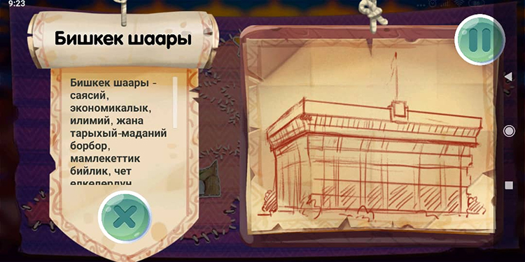 Более-менее интересно и понятно изложена информация о Родине. На карте Кыргызстана каждая область обозначена достопримечательностью. Нажимаешь на нее, и выходит краткая информация: перечислены районы, входящие в область, и указано название достопримечательности.
