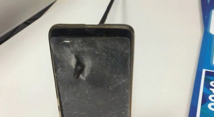 Она пробила устройство насквозь, но мужчина не пострадал. У него только появилась рана на подбородке, так как телефон от удара отлетел в лицо.