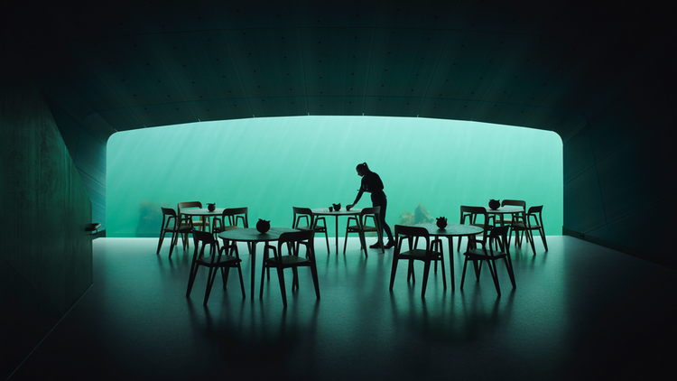 Спроектированное фирмой Snohetta прямоугольное здание ресторана Under площадью 34 квадратных метра открыли в самой южной точке скалистого побережья Норвегии. Здание погружено в воду примерно на 5 метров, сообщил портал @hi-tech.