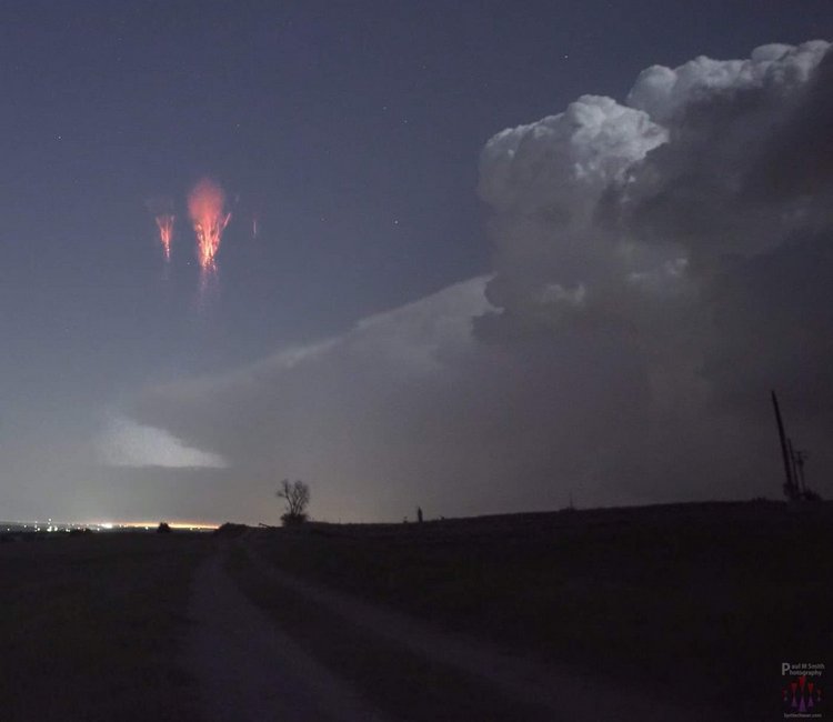 Спрайты над Оклахомой сфотографировал местный житель и опытный охотник за загадочными атмосферными явлениями Пол Смит. В процессе съемки ему удалось заснять два разных типа спрайтов — колоннообразный и медузоподобный.