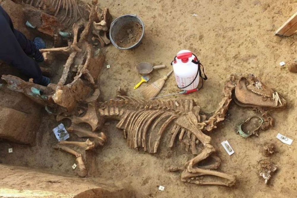 В большой погребальной камере находилась хорошо сохранившаяся колесница, в которую запряжены две лошади. Такие захоронения практиковались в Древнем Риме, но встречаются крайне редко. К тому же данное захоронение оказалось одним из самых молодых, известных науке.