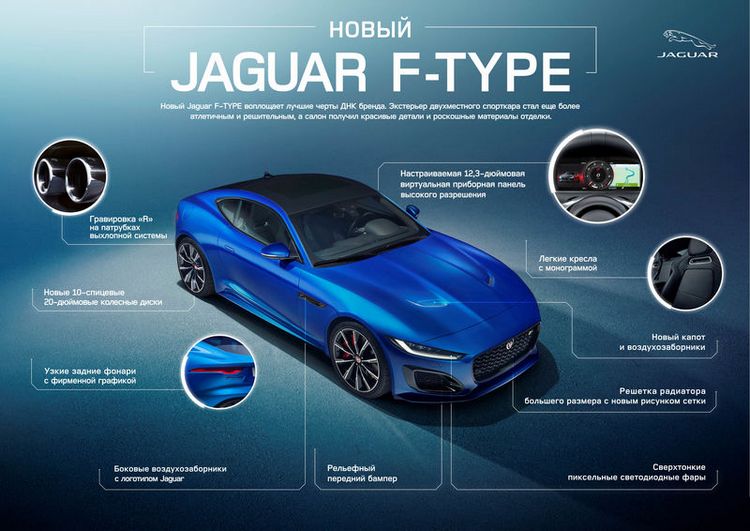 Обновленный спорткар F-Type получил 5-литровый мотор мощностью 450 лошадиных сил, новый капот, бамперы и оптику, а также некоторые изменения в салоне. Об этом пишет издание «За рулем».