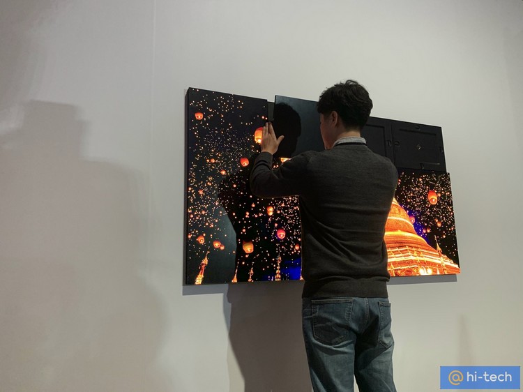 Главная особенность MicroLED-телевизоров — их можно комбинировать. С помощью дополнительных панелей можно собрать телевизор любой формы и соотношения сторон, как конструктор. Панели очень тонкие и почти без рамок, поэтому они легко стыкуются между собой.