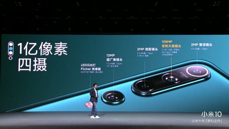 Главной «фишкой» Xiaomi Mi 10 станет камера, их стразу четыре: основная на 108 мегапикселей с оптической стабилизацией и широкоугольная на 13 мегапикселей. Есть два дополнительных модуля по 2 мегапикселя для макро- и программного размытия фона.