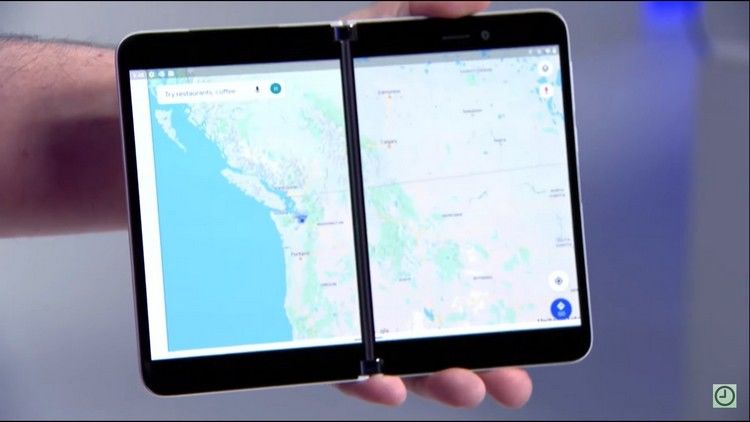 У Surface Duo два 5,6-дюймовых дисплея, которые складываются как ноутбук. В разложенном состоянии получается планшет с 8,3-дюймовым экраном, только посередине будет небольшая рамка.