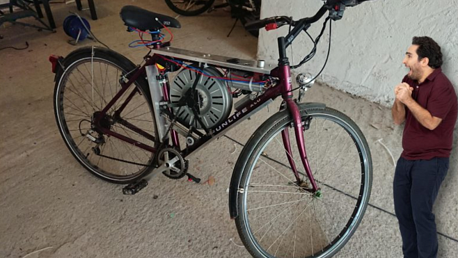 Гибрид стиральной машины и велосипеда представляет собой, скорее, мопед, так как большинство современных электровелосипедов обычно лишь помогают крутить педали, снижая нагрузку на ноги ездока. Здесь же педали при включенном двигателе играют лишь роль подставки для ступней. Пока проект не закончен.