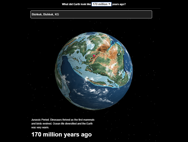 С помощью новой интерактивной карты вы можете узнать, где находился ваш город 20, 200 и даже 750 миллионов лет назад. Онлайн-карта, разработанная палеонтологом Яном Вебстером, имеет разные инструменты, которые также позволяют узнать больше о нашей планете. Так, на сайте можно узнать, где был ваш дом во время появления первых рептилий или цветов.