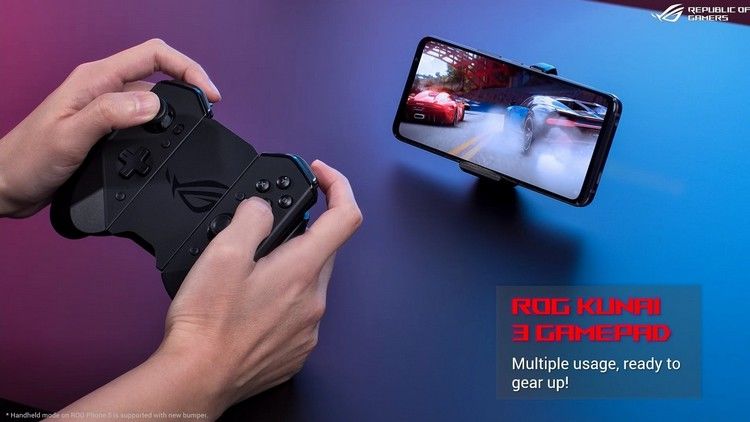 Вместе со смартфоном ASUS представила линейку игровых аксессуаров: геймпад ROG Kunai 3, крепление ROG Clip на геймпад PS4 и Xbox One, защитные чехлы.