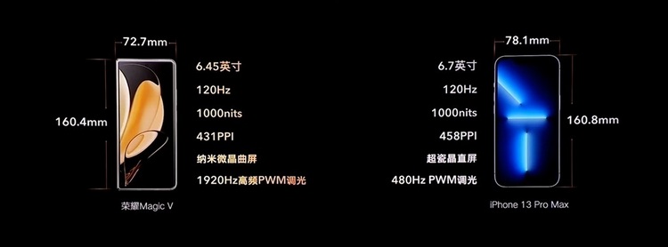 Сравнение ключевых параметров внешнего экрана Magic V и смартфона iPhone 13 Pro Max можно увидеть внизу. Устройство вполне комфортно использовать, не раскладывая до размеров планшета: