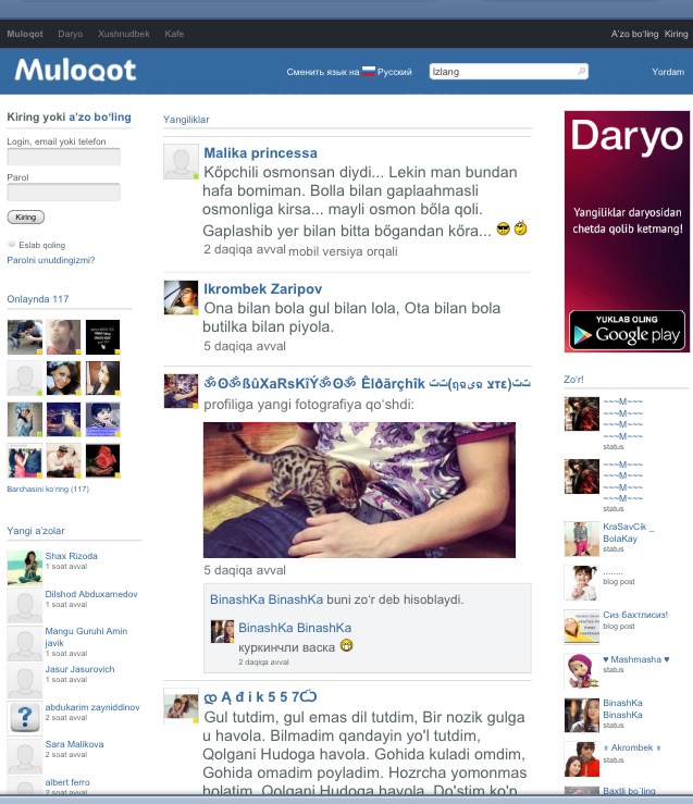 Фарход Файзуллаев - создатель самой посещаемой соцсети в стране muloqot.uz (Диалог). Сеть появилась в 2011 году. В начале 2014 года его компания запустила мессенджеры GAPim и Gap - это местный вариант WhatsApp.