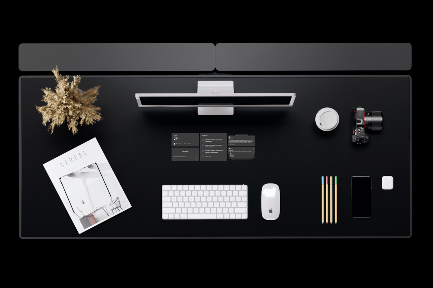 Отличительной особенностью смарт-стола является встроенный в корпус OLED-дисплей, который будет располагаться примерно между монитором и клавиатурой пользователя. На этом дисплее можно расположить виджеты, уведомления из социальных сетей, рыночные котировки и любую другую информацию, которая покажется релевантной владельцу стола.