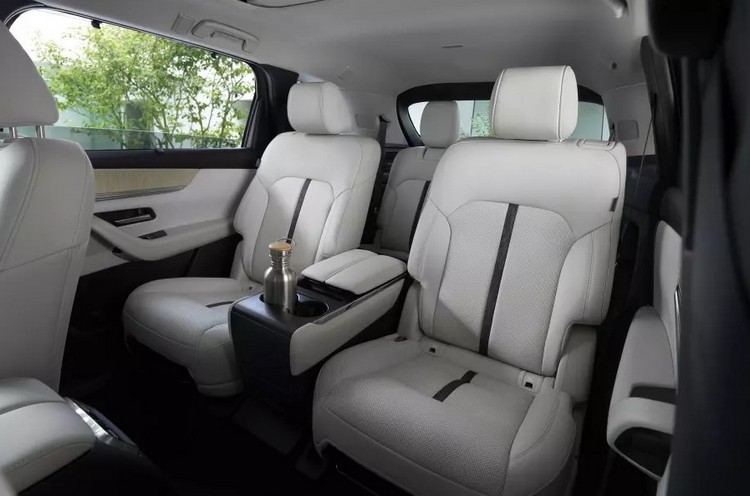 Новый CX-80 на 250 миллиметров длиннее и на 24 миллиметра выше CX-60. Растянутая колесная база позволила добавить третий ряд сидений, причем его можно скомпоновать тремя разными способами. Первый — трехместный диван, второй — раздельные кресла с проходом посередине, третий — раздельные кресла с центральной консолью. Второй ряд можно двигать продольно на 120 миллиметров и менять наклон спинок в диапазоне 15-33 градуса.