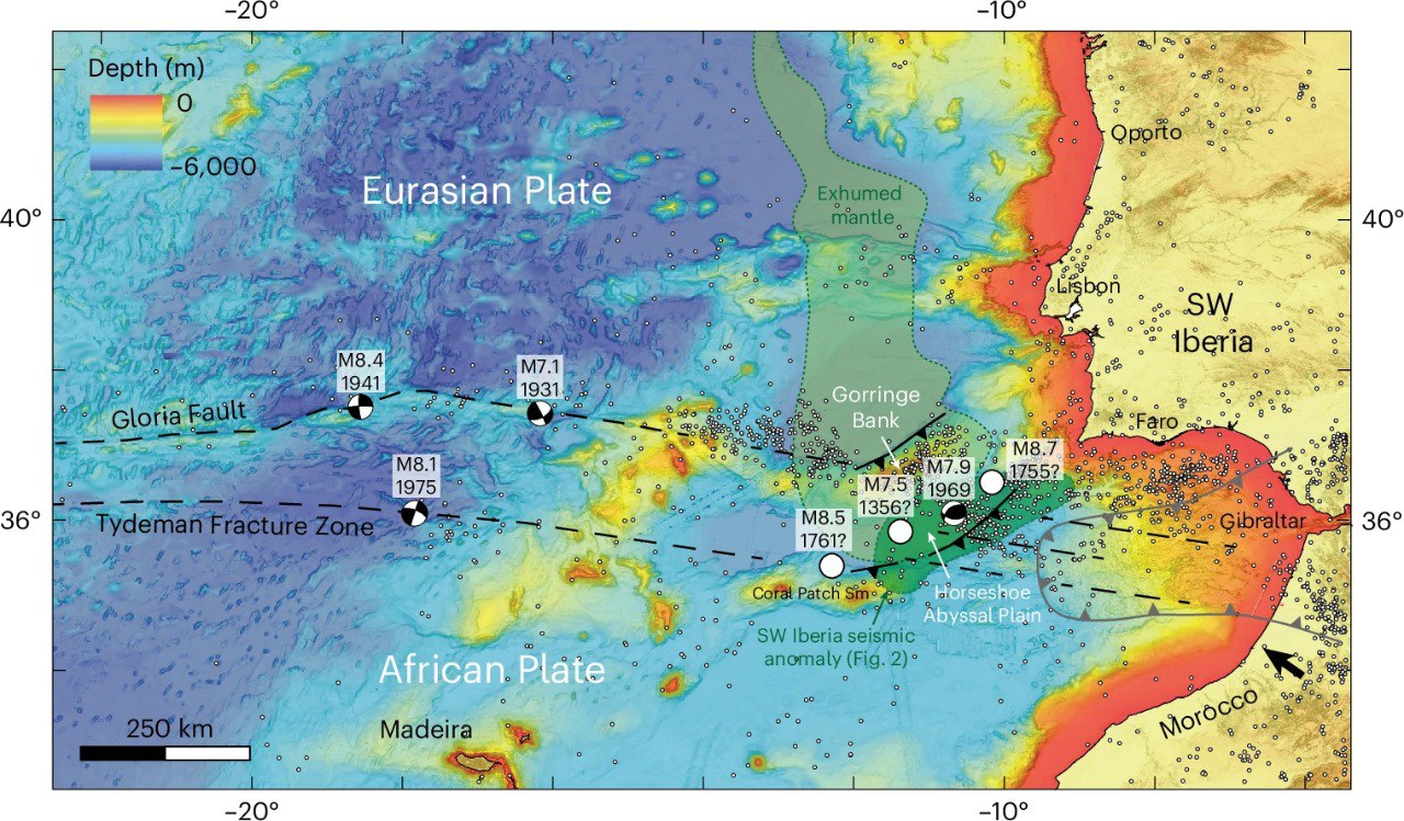 Отмечается, что традиционно Атлантика считалась спокойной зоной, но в Португалии, находящейся в удалении от известных разломов, неоднократно происходили сильные землетрясения. По словам геологов, при землетрясении 1969 года были все признаки, характерные для зоны субдукции — границы сходящихся литосферных плит. В ходе недавнего анализа команда геолога из Лиссабона Жуана Дуарте сопоставила сейсмические данные и компьютерные модели абиссальной равнины, расположенной к юго-западу от Португалии, и нашла доказательства расслоения мантии.