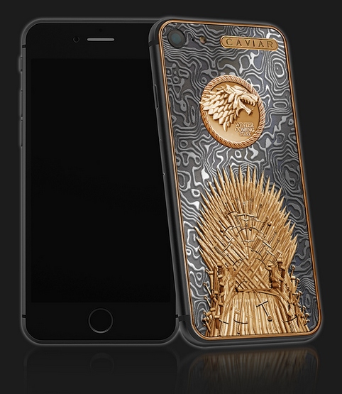 iPhone 7 Game of Thrones также сделан из «валирийской стали» с гербом Дома Старков. Он украшен Железным троном — символом сериала «Игра престолов». Трон покрыт настоящим золотом.