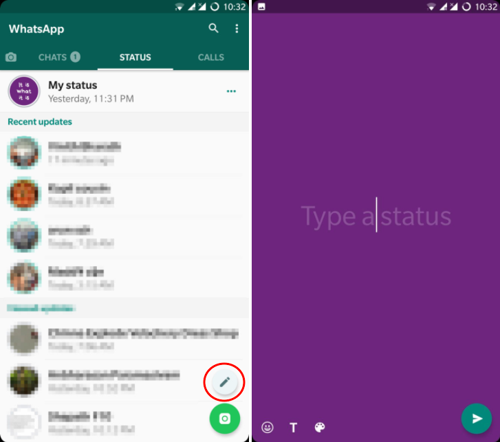Доступ к новой функции есть у некоторых пользователей бета-версии 2.17.291 на Android. Однако она появилась не у всех, это зависит от сервера. Чтобы сменить иконку с фото на текстовое сообщение, нужно перейти на вкладку со статусами и нажать на карандаш внизу справа.