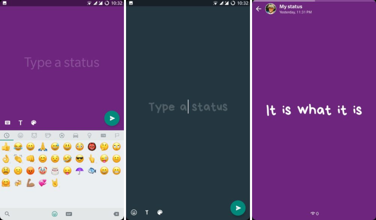 WhatsApp представил исчезающие статусы почти полгода назад. Пользователи могут рассказать друзьям о том, чем они занимаются, опубликовав фото; изображения автоматически исчезают через 24 часа. В марте в мессенджер вернулись текстовые статусы.