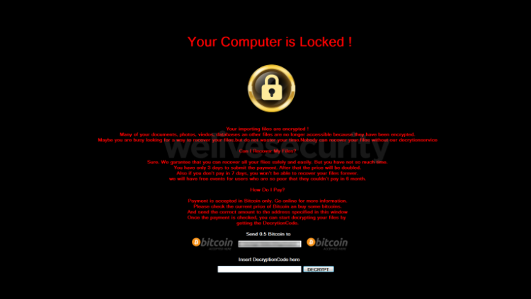 После запуска вируса на экран выводится окно с сообщением о блокировке компьютера. Пользователь не может получить доступ к рабочему столу, файлам и приложениям. Ему предлагают заплатить половину биткоина (около 130 тысяч сомов) для доступа к своим данным. Через три дня сумма выкупа удваивается, а через семь дней файлы невозможно будет расшифровать.