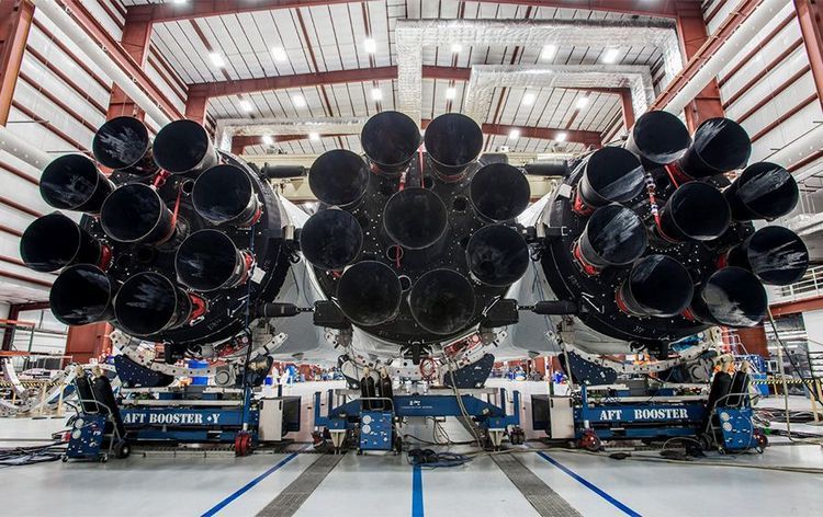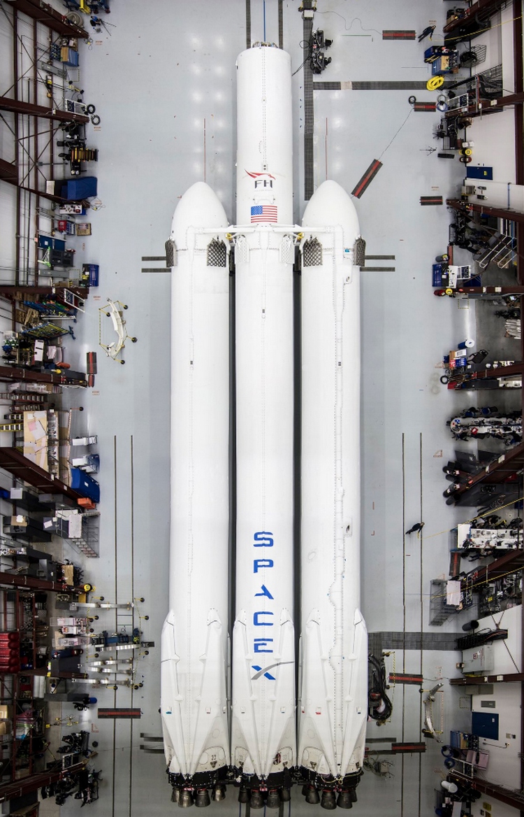 Илон Маск подчеркнул, что сборка происходит в ангаре у той же площадки, с которой стартовала первая лунная миссия Apollo 11. Он восторгается ракетой-носителем «Сатурн-5», двигатели которой имели в 1,5 раза большую тягу, и отмечает, что первый полет Falcon Heavy пойдет на 92 процента мощности двигателей. При этом все три первые ступени будут возвращены на Землю для повторного использования.