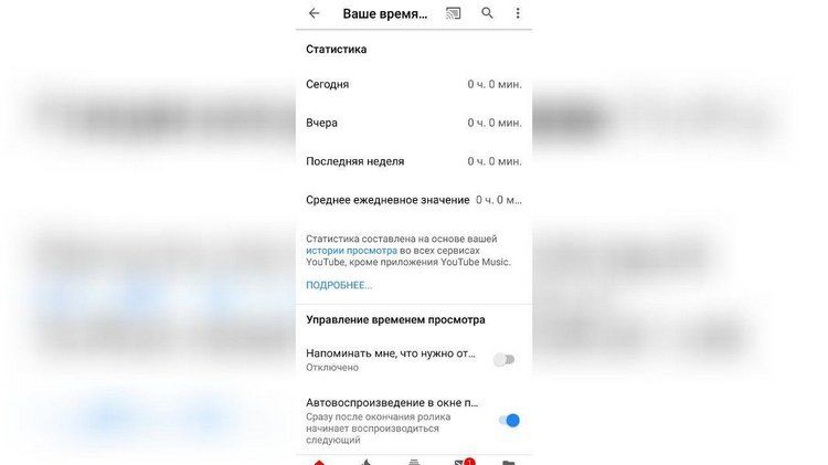 Такая функция в официальном клиенте появилась с последним обновлением. Теперь можно посмотреть данные о потраченном времени на видео за текущий или вчерашний день, неделю, а также узнать среднее значение за сутки.
