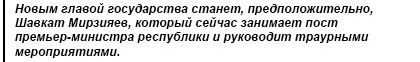 Ислам Каримов скончался на 79-м году жизни от инсульта. Главу Узбекистана госпитализировали 28 августа. С этого момента он находился в коме. Слухи о том, что Ислам Каримов умер, распространялись еще с 29 августа, но официальный Ташкент подтвердил их лишь сейчас.