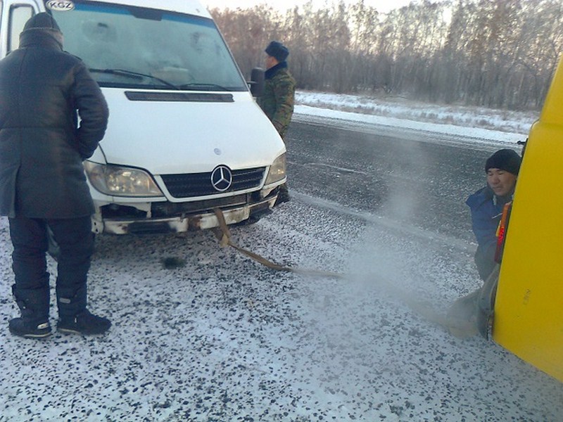 Как отмечается, сегодня утром на пульт пожарной части в районном центре Железинка поступило сообщение, что у села Прииртышское на трассе Омск - Майкапчагай сломался микроавтобус «Мерседес-Спринтер» с 15 пассажирами.