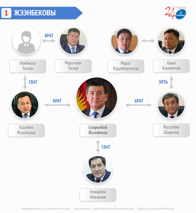 Самый влиятельный клан — большая семья нынешнего президента страны Сооронбая Жээнбекова.