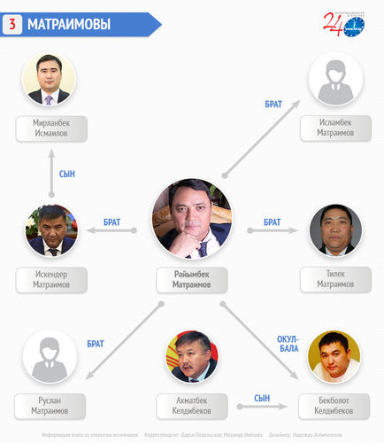 В Жогорку Кенеше сейчас есть уже один представитель клана — Искендер Матраимов. Комментарии по поводу брата Райымбека журналистам давал именно Искендер.