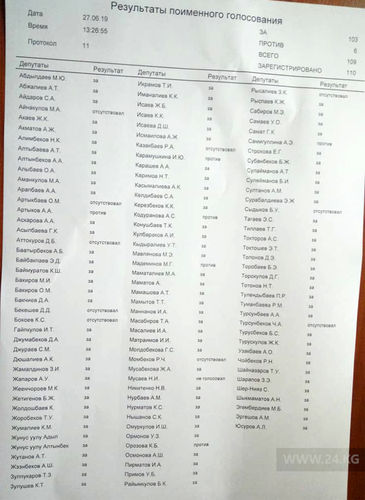 Лишение неприкосновенности Атамбаева. Итоги поименного голосования