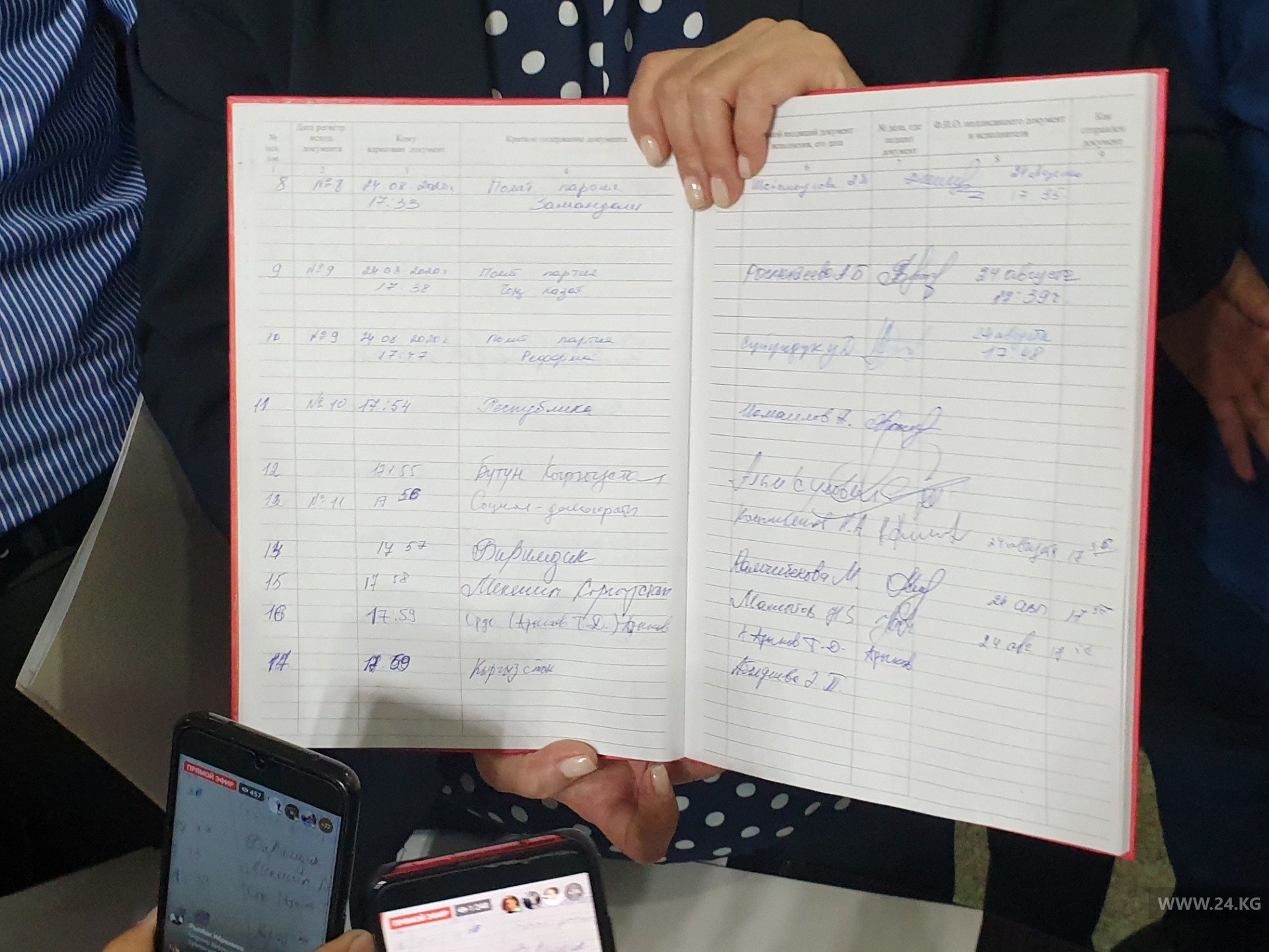Глава ЦИК продемонстрировала журнал регистрации, где указано, что представитель штаба партии прибыл в 17.59.
