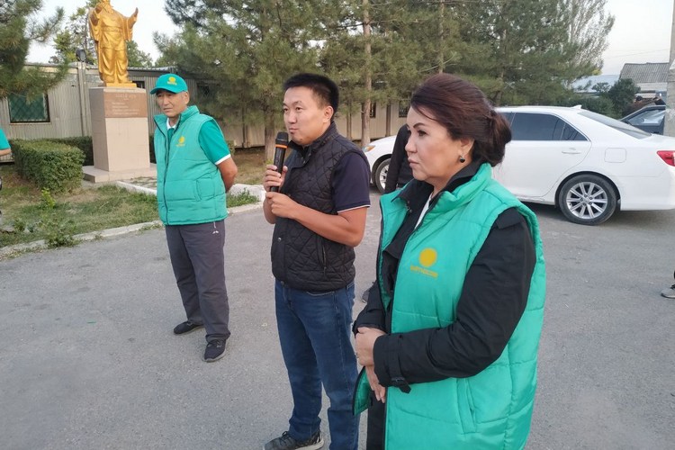 После субботника кандидат в депутаты от политической партии «Кыргызстан» Зухра Кемелбекова, а также представитель политобъединения Самарбек Болотбеков провели встречу с жителями жилмассива «Бакай-Ата».