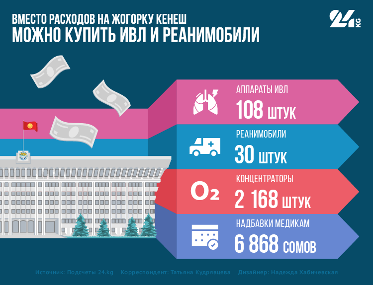 На 140 миллионов сомов можно купить более 2 тысяч кислородных концентраторов. В июле, в разгар вспышки коронавируса, задействовали в работе 20 тысяч 520 медработников. Если бы вместо финансирования парламента деньги раздали им, то каждый медик получил бы почти по 7 тысяч сомов.