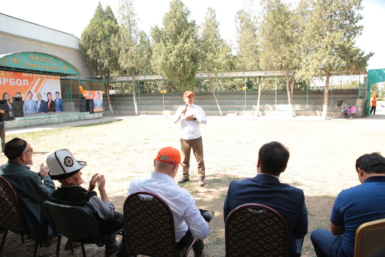 «С начала агитационного периода я встречаюсь с избирателями Кашгар-Кишлакского, Нариманского и Акташского сельских управ. Сам я родился и вырос в Кашгар-Кишлакском айыл окмоту. Разумеется, хорошо знаком с проблемами региона и самих граждан. Поскольку наш регион является самым густонаселенным в стране, здесь остро стоит вопрос инфраструктуры: не выдерживают дороги, много общественного, частного и грузового транспорта, который разбивает как центральные трассы, так и внутренние. Также, как ни парадоксально, не хватает питьевой воды, хотя мы являемся государством с богатейшими гидроресурсами.