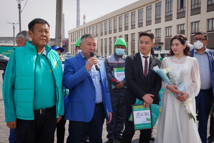Примечательно, что в партию вошла и пара молодоженов, которым лидер «Кыргызстана» вручил партийные билеты. По его словам, отношения супругов будут такими же стабильными и прочными, как и партия «Кыргызстан».