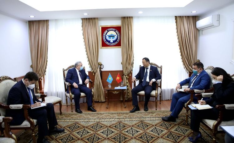 Министр иностранных дел Кыргызстана Руслан Казакбаев принял Чрезвычайного и Полномочного Посла Республики Казахстан в КР Кайрата Нурпеисова. Об этом сообщила пресс-служба внешнеполитического ведомства.